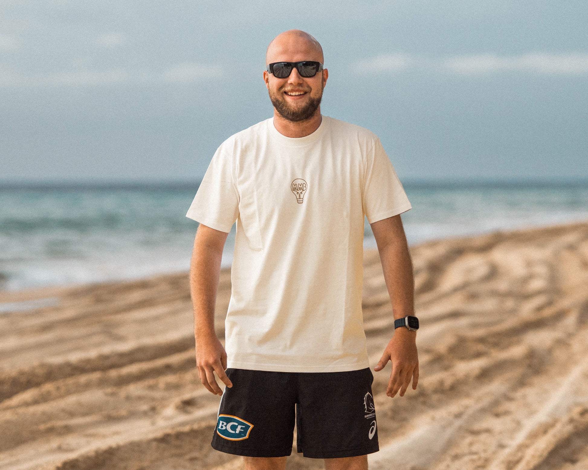 Cold wash inside out, gentle cycle. Line dry in the shade — no tumble dryer. Don’t iron over the print. No bleach or harsh stuff. Treat it right and your MMB tee will last longer than your last set of tyres.